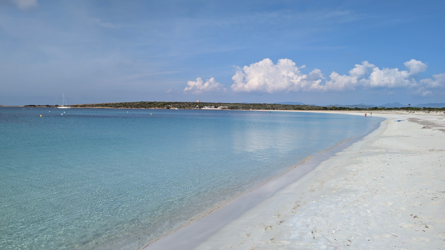 Nach einer kurzen Pause segeln wir weiter Richtung Formentera. Etwa 200-300 Meter vor dem - so sagt man uns - "fünftschönsten Strand der Welt" wird geankert. Wer mag, steigt oder springt von Bord ins offene Meer, um den Katamaran schwimmend zu umrunden oder lustige Fische beim Schnorcheln zu entdecken. Nach kurzer Pause mit Nachtisch geht die Fahrt zurück in den Hafen von Ibiza. Ein tolles, tagesfüllendes Erlebnis.